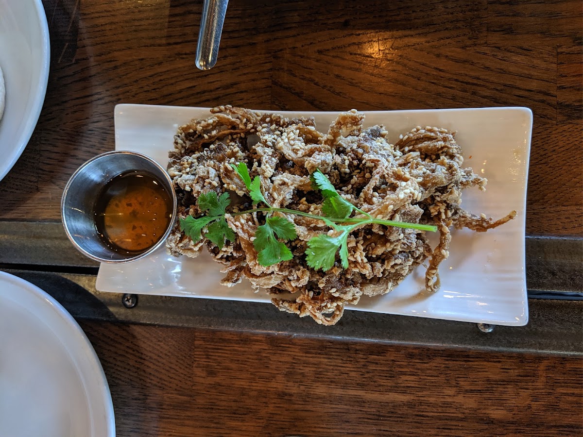 Isarn in Lynnwood is my favorite Thai spot. I've been here several times and it never disappoints. I typically start with an appetizer like the Mini Isarn Wings, which I am addicted to now. They have a unique sweet saucy flavor. I also ordered the pork strips which is a nice crunch and goes great with the fried garlic. The Thai Beef Salad is a good balance for protein and veggies. I got the 3 star spicy level. They really do make it spicy, just fyi. For dessert, the Seasonal Mango Sticky Rice was a delight, with ripe mango and creamy, sweet sticky rice enhanced by coconut milk. The service and drinks are always great too!