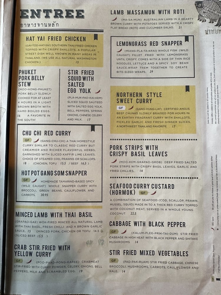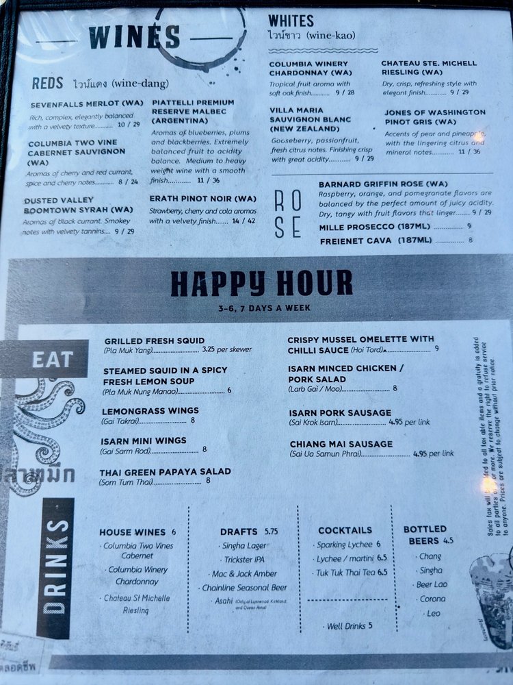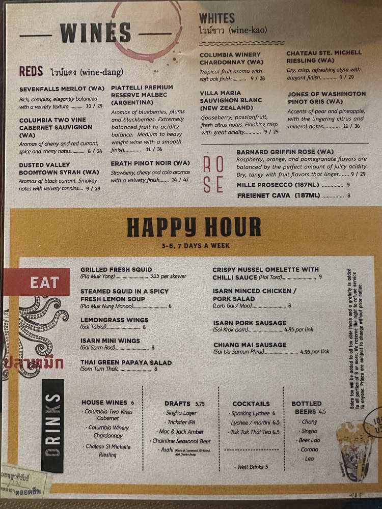 Isarn Thai Soul Kitchen, located in Lynnwood, WA, offers a diverse menu with a focus on Thai noodles. The restaurant provides options for vegans and vegetarians, and prides itself on being wheelchair accessible and eco-friendly. Customers praise the flavorful dishes, such as the Mushroom Fritters, Grilled Pork Jowl, and Thai Green Papaya Salad. The restaurant has a casual and trendy ambiance, making it suitable for various occasions. Positive reviews highlight the quality of the food, attentive service, and great value, particularly during happy hour. Isarn Thai Soul Kitchen is a go-to spot for delicious Thai cuisine that caters to a variety of dietary preferences and offers a pleasant dining experience.