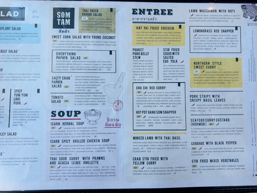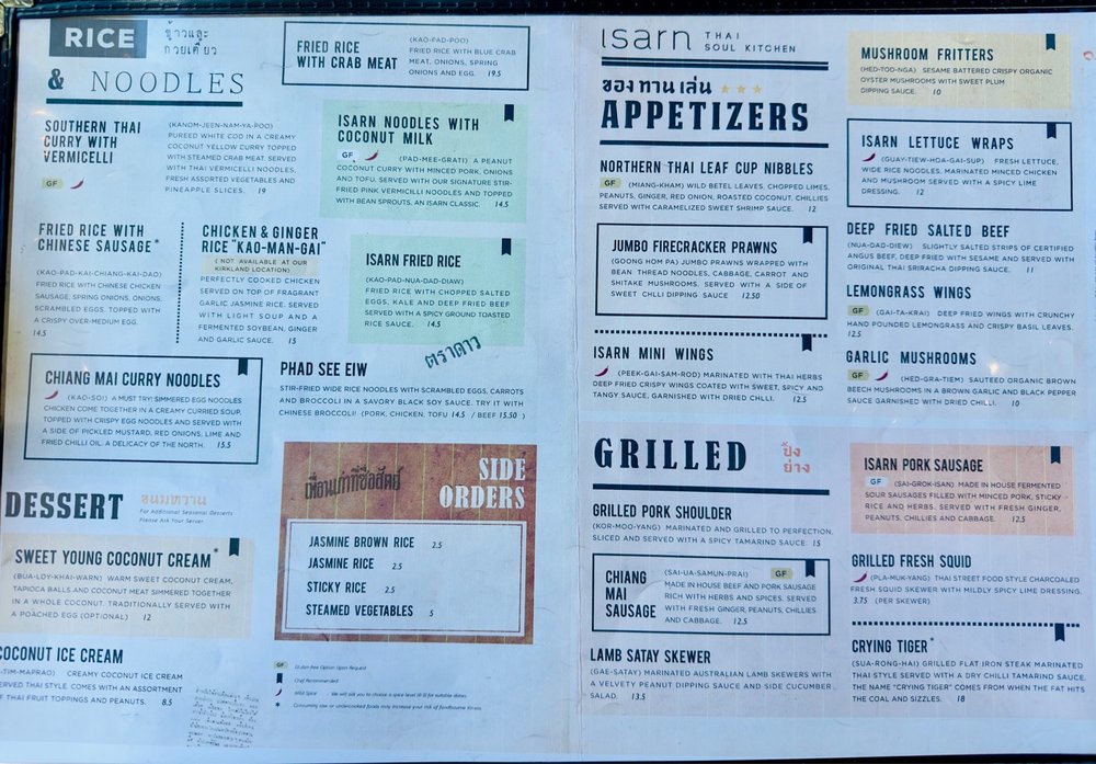 Isarn Thai Soul Kitchen Menu